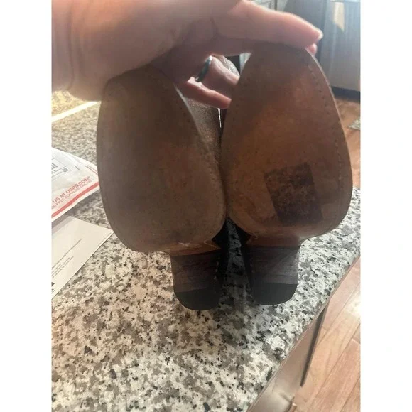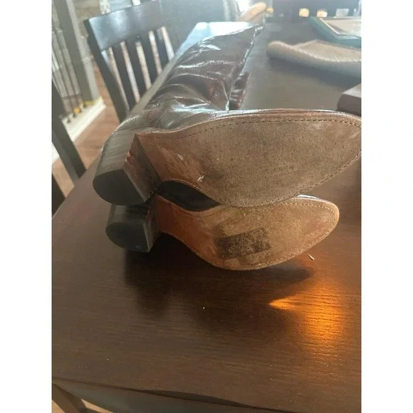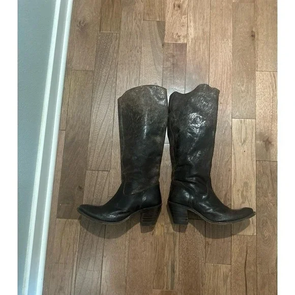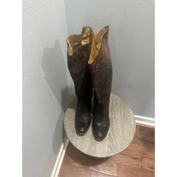 Frye Western Boots Women Size 5.5 M Sandra Riding Dark Brown Distressed LeatherChocolate Distressed Leather. Circumference: 14" mid calf Superior quality and exquisite style, these boots have it all! Leather uppers. Leather sole#this 77096.r genuine Goodyear welt made in SpainPreowned smoke free home