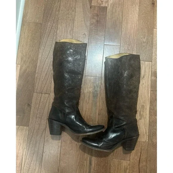 Frye Western Boots Women Size 9B Sandra Riding Dark Brown Distressed Lthr 77096