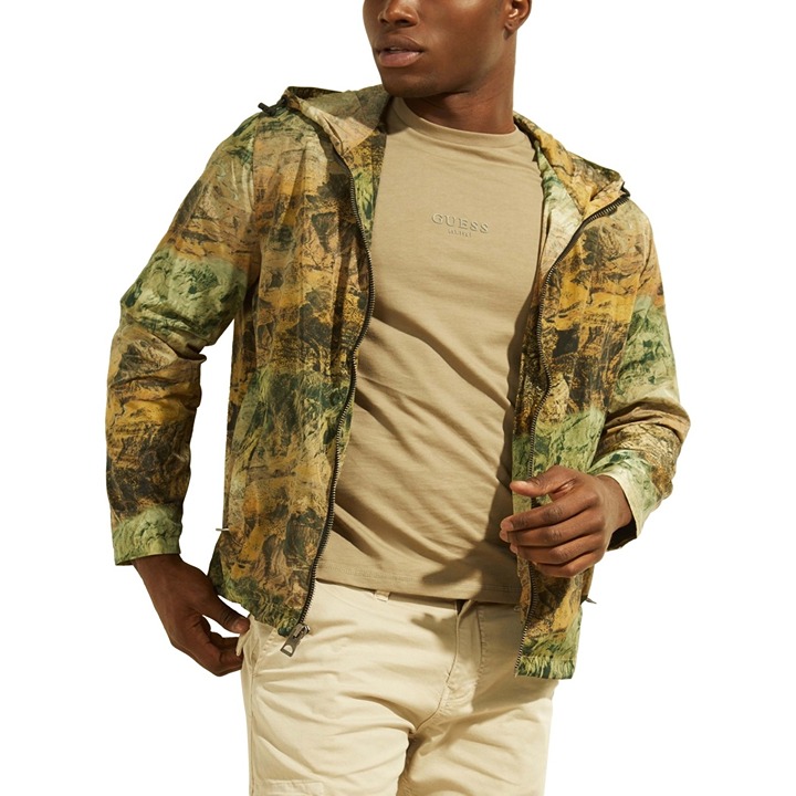 GUESS adds all the extras to this tech jacket for complete comfort while you're out in the elements, featuring a sleek fit, two-tone lining and hand pockets.