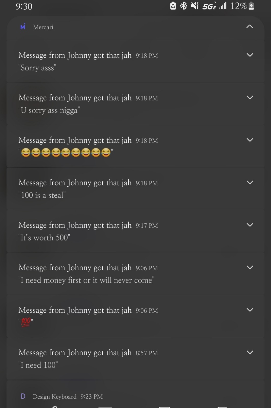 Greyday 2025 buyers beware! This dude scammed my friend out of a bones bandana he was originally selling for 81 dollars plus the shipping! Asked us to leave a review before our item arrived. He wanted the money first before shipping the item out. Mecari pays the seller after an item has arrived! Its part of buyer protection policy. He asked for another 100 for it on top of us already paying the 81 dollars. He then posts the bandana for 500 saying its worth that much. A piece of cloth def isn't worth that much.